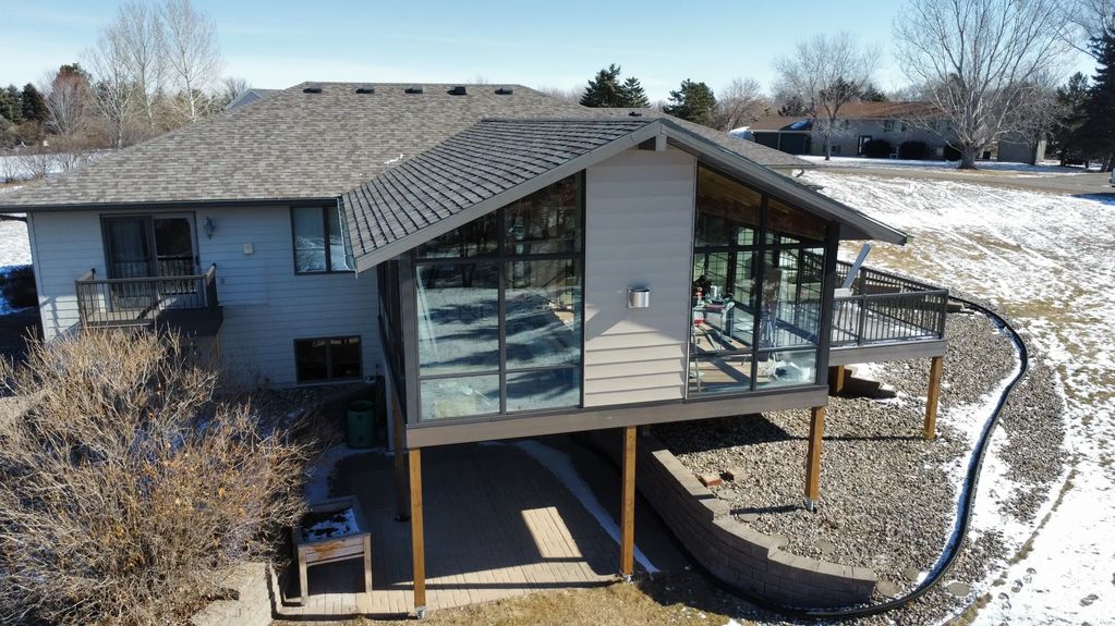 The old deck was removed and this new 4 season room was added along with a new composite deck and aluminum railing.